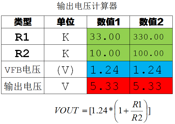 TX4205 输出电压计算器: